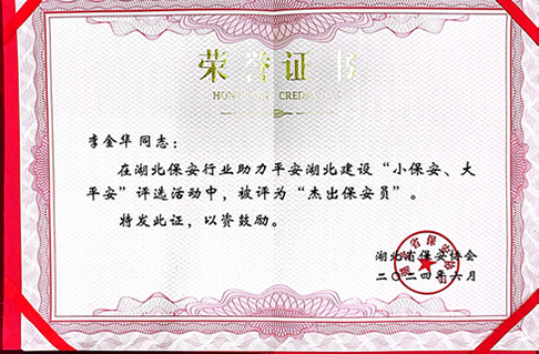 杰出保安員榮譽(yù)證書
